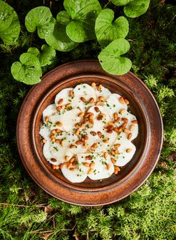 Herkkutatticarpaccio ja pinjansiemenvinegretti